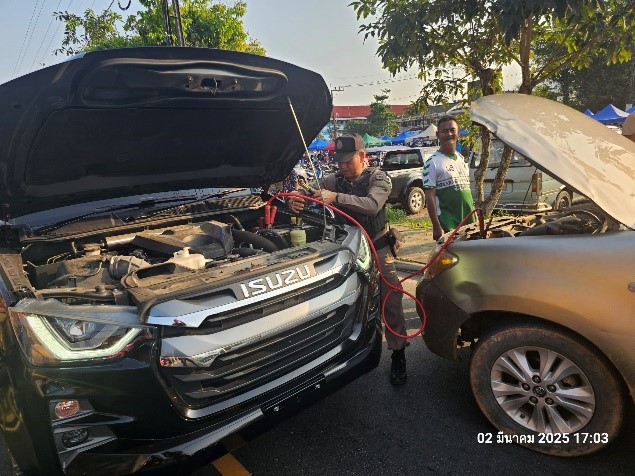 วันที่ 2 มี.ค.68 เวลา 17.00 น. ภายใต้การอำนวยการของ ว่าที่ พ.ต.อ.อัสรี ต่วนเพ็งผกก.สภ.สุไหงปาดี สั่งการให้ ด.ต.อนุชา ขุนทองเพ็ชร ปฏิบัติหน้าที่ร้อยเวร 2-0 พร้อมด้วยข่ายจราจร ว.4 เหตุขอความช่วยเหลือรถยนต์แบตเตอรี่หมดบริเวณหน้าสถานีรถไฟสุไหงปาดี ได้ทำการพวงแบตเตอรี่ให้เรียบร้อย แต่ไม่สามารถใช้งานได้ จึงได้ประสานช่างเครื่องมาซ่อมต่อไป