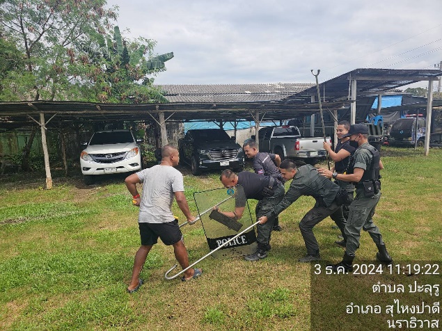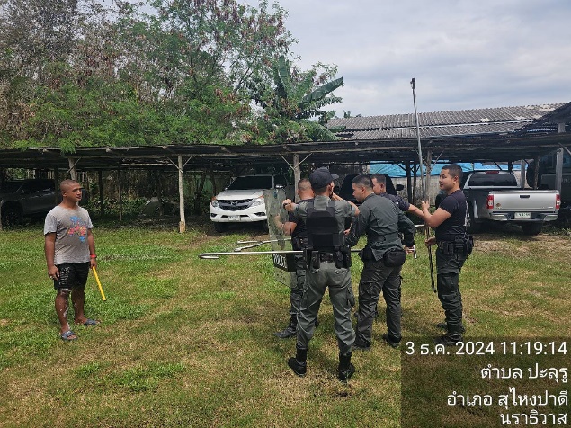 วันที่ 3 ธ.ค.67 เวลา 11.16 น. ภายใต้การอำนวยการของ ว่าที่ พ.ต.อ.อัสรี ต่วนเพ็ง ผกก.สภ.สุไหงปาดี สั่งการให้ ด.ต.ณรงค์ศักดิ์ ไชยแสงศรี ปฏิบัติหน้าที่ร้อยเวร 2-0 พร้อมกำลังพล มว.ฉก.นปพ.นธ.32 ร่วม ว.4 ซักซ้อมการใช้อุปกรณ์ควบคุมบุคคลคลุ้มคลั่ง (ไม้ง่าม) แนะนำวิธีการใช้งานของอุปกรณ์ สร้างความคุ้นชิน รวมถึงความเข้าใจเป็นแนวทางในกรณีที่ต้องปฏิบัติร่วมกัน