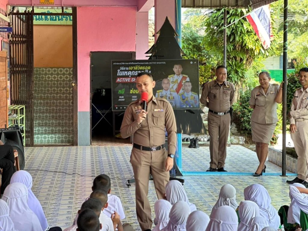 ตชส.สภ.สุไหงปาดี ดำเนินการอบรมโครงการการศึกษาเพื่อต่อต้านการใช้ยาเสพติดในเด็กนักเรียน