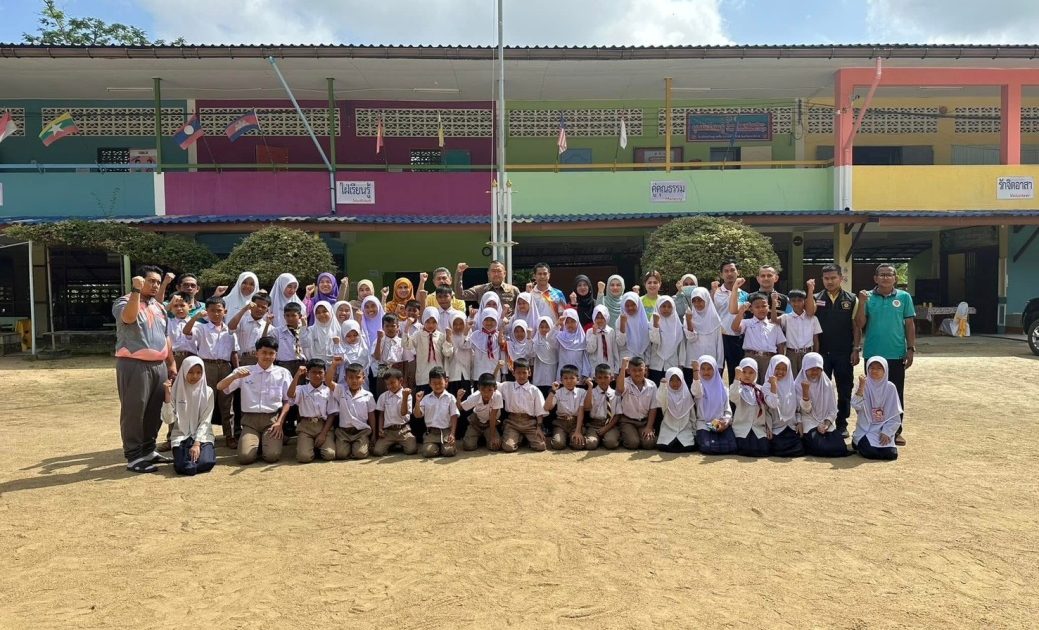 วันที่ 5 กุมภาพันธ์ 2568 เวลา 09.30 น.ภายใต้อำนวยการของ พ.ต.อ.อัสรี ต่วนเพ็ง ผกก.สภ.สุไหงปาดี มอบหมายให้ พ.ต.ท.ธีระศักดิ์ วิสมิตะนันท์ สว.อก.สภ.สุไหงปาดี พร้อมด้วยชุด ตชส.สภ.สุไหงปาดีดำเนินการอบรมโครงการการศึกษาเพื่อต่อต้านการใช้ยาเสพติดในเด็กนักเรียน และเยาวชน สร้างจิตสำนึกให้มีความจงรักภักดีต่อสถาบันชาติ ศาสนา และพระมหากษัตริย์ ตลอดจนวิธีการเอาตัวรอดจากเหตุการณ์กราดยิง ACTIVE SHOOTER หนี ซ่อน สู้ ให้กับเด็กนักเรียนโรงเรียนบ้านตาเซะใต้ ณ โรงเรียนบ้านตาเซะใต้ ต.ปะละรู อ.สุไหงปาดี จว.นราธิวาส
