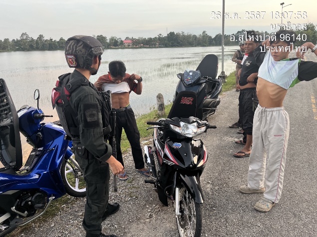 วันที่ 26 ธ.ค.67 เวลา 17.45 น. ภายใต้การอำนวยการของ ว่าที่ พ.ต.อ.อัสรี ต่วนเพ็ง ผกก.สภ.สุไหงปาดี , พ.ต.ท. วสันต์ พันธ์โภชน์ รอง ผกก.ป.สภ.สุไหงปาดี สั่งการให้ ชป.สภ.ใหม่ ว.4 พื้นที่ บริเวณโดยรอบอ่างเก็บน้ำโคกยาง ม.6 ต.สุไหงปาดี อ.สุไหงปาดี จ.นราธิวาส ตรวจสอบกลุ่มวัยรุ่นที่เข้ามา จับกลุ่มบนถนนรอบอ่าง เพื่อป้องกันการกระทำความผิด ผลการปฏิบัติ ไม่พบสิ่งผิดปกติแต่อย่างใด