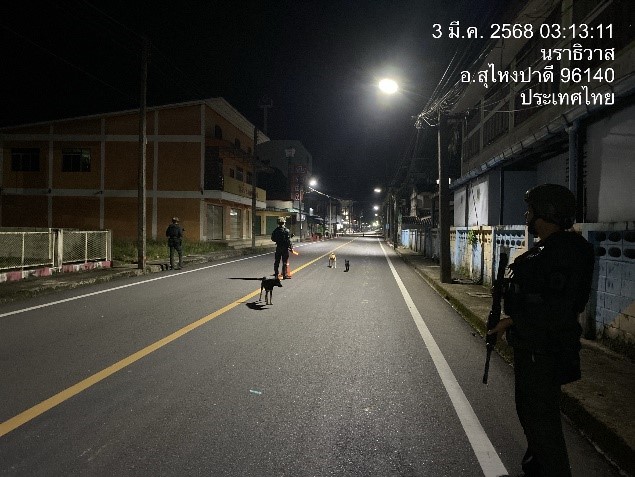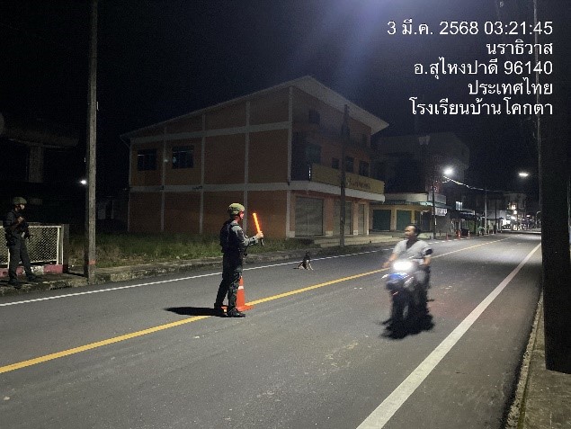 วันที่ 3 มี.ค.68 เวลา 03.10 – 03.25 น. ภายใต้การอำนวยการของ ว่าที่ พ.ต.อ.อัสรี ต่วนเพ็ง ผกก.สภ.สุไหงปาดี ควบคุมการปฏิบัติโดย ร.ต.ท.รัตนพงษ์ นิลวัฒน์ ตำแหน่ง ผบ.มว. (สบ.1) สภ.สุไหงปาดี ปฏิบัติหน้าที่ ผบ.มว.ฉก.นปพ.นธ.32 (สุไหงปาดี) สั่งการให้ ชป.ภูผา พร้อม ว.30 ว.4 ว.43 (Pop up) ตรวจสอบประวัติบุคคล รถจักรยานยนต์ รถยนต์ในเขตเทศบาลสุไหงปาดี ผลการปฏิบัติไม่พบสิ่งผิดกฎหมายแต่อย่างใด เหตุการณ์ทั่วไปปกติ