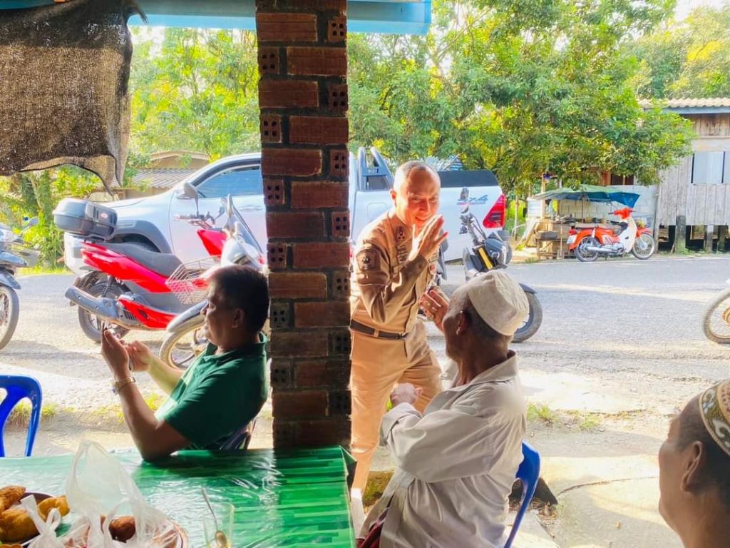 พ.ต.อ.อัสรี ต่วนเพ็ง ผกก.สภ.สุไหงปาดี ตรวจเยี่ยมพบปะ ผู้นำท้องถิ่น และประชาชนที่ร้านน้ำชา ในเขตพื้นที่ หมู่บ้านตาเซะใต้ หมู่ที่ 6 ตำปะลุรู อำเภอสุไหงปาดี จังหวัดนราธิวาส และได้ประชาสัมพันธ์ ให้ประชาชนหมั่นสังเกต สอดส่อง วัตถุ ,หีบห่อฯ และแจ้งข่าวสาร ข่าวแจ้งเตือนต่างๆ ในพื้นที่ให้ประชาชนได้รับทราบ