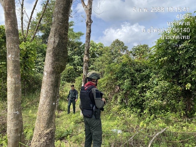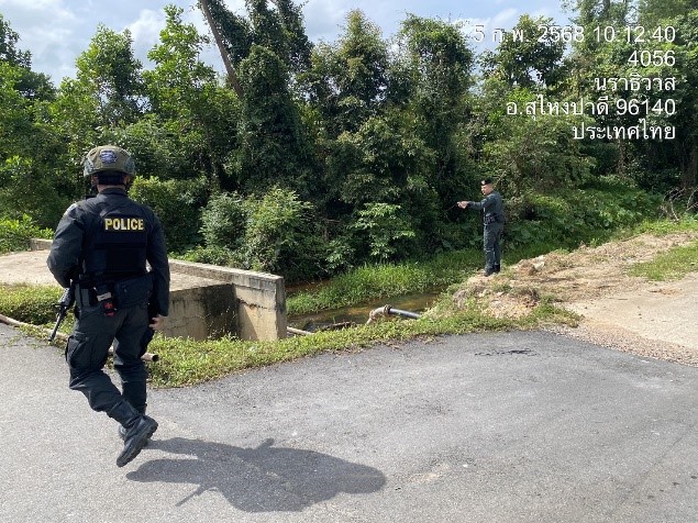 วันที่ 5 ก.พ.68 เวลา 10.00 น. ภายใต้การอำนวยการของ ว่าที่ พ.ต.อ.อัสรี ต่วนเพ็งผกก.สภ.สุไหงปาดี โดยมี ร.ต.ท.รัตนพงษ์ นิลวัฒน์ ผบ.มว.ฉก.นปพ.นธ.32 (สุไหงปาดี) จัดกำลัง 1 ชป. ทำการ รปภ.เส้นทาง ให้กับคณะศูนย์ประสานงานโครงการอันเนื่องมาจากพระราชดำริ ที่ลงพื้นที่ตรวจเยี่ยมการดำเนินงานโครงการหมู่บ้านเศรษฐกิจพอเพียงในพื้นที่ อ.สุไหงปาดี เพื่อตรวจสอบพื้นที่จุดเสี่ยง/จุดล่อแหลม ค้นหาบุคคล ระวังป้องกันและจำกัดเสรีในการปฏิบัติ รวมถึงต่อต้านความพยายามในการเข้ามาก่อเหตุสร้างสถานการณ์ของกลุ่ม ผกร. บนถนน เส้น ๔๐๕๖ พื้นที่รับผิดชอบ ต.ปะลุรู อ.สุไหงปาดี จ.นราธิวาส ผลการปฏิบัติ เป็นไปด้วยความเรียบร้อย