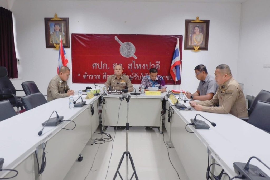 วันที่ 12 พฤศจิกายน 2567 เวลา 10.30 น. พ.ต.อ.อัสรี ต่วนเพ็ง ผกก.สภ.สุไหงปาดี,พ.ต.ท.วสันต์ พันธ์โภชน์ รอง ผกก.ป.สภ.สุไหงปาดี, พ.ต.ท.ธีระศักดิ์ วิสมิตะนันท์ สว.อก.สภ.สุไหงปาดี และชุด ตชส.