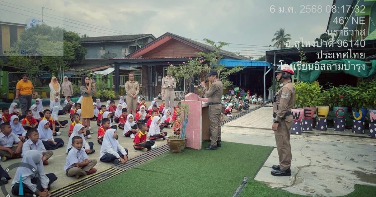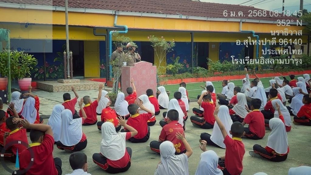 วันที่ 6 มกราคม 2568 เวลา 08.15 น.ภายใต้การอำนวยการของ พ.ต.อ.อัสรี ต่วนเพ็ง ผกก.สภ.สุไหงปาดี สั่งการให้มอบหมายให้ พ.ต.ท.ไพโรจน์ ชาลี สวป.สภ.สุไหงปาดี พร้อมด้วย ตำรวจจราจร สภ.สุไหงปาดีร่วมเป็นวิทยากร โครงการส่งเสริมวินัยจราจร ณ โรงเรียนอิสลามบำรุง อ.สุไหงปาดี จ.นราธิวาส