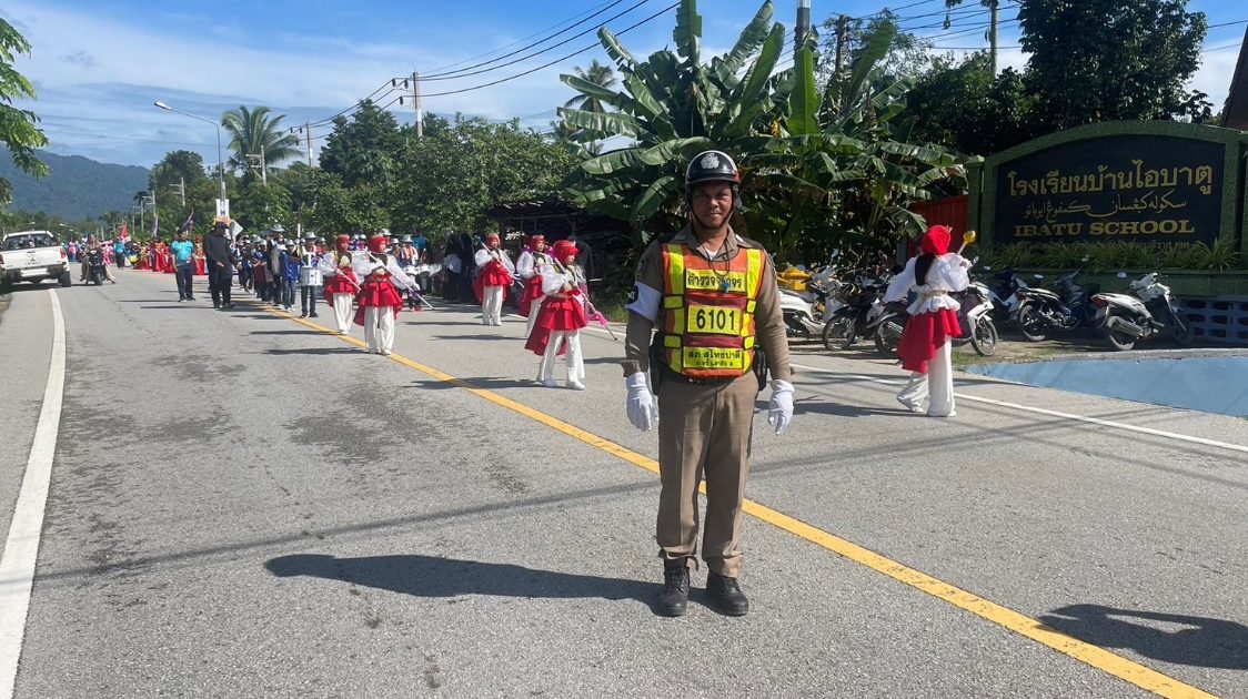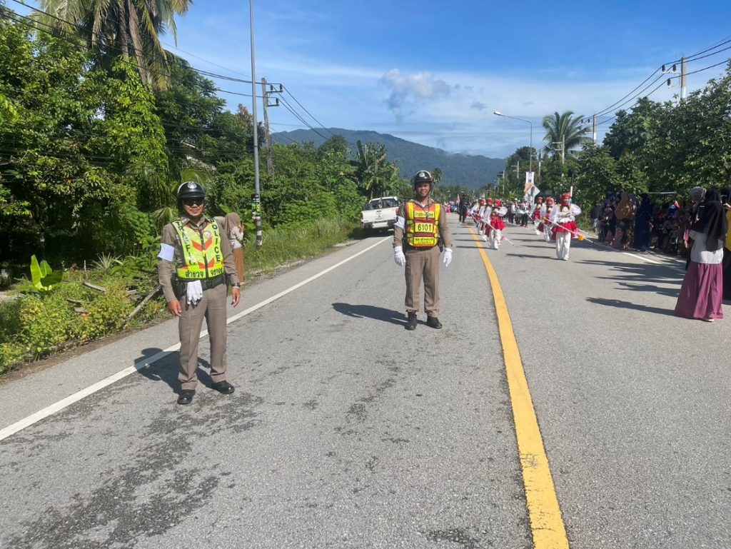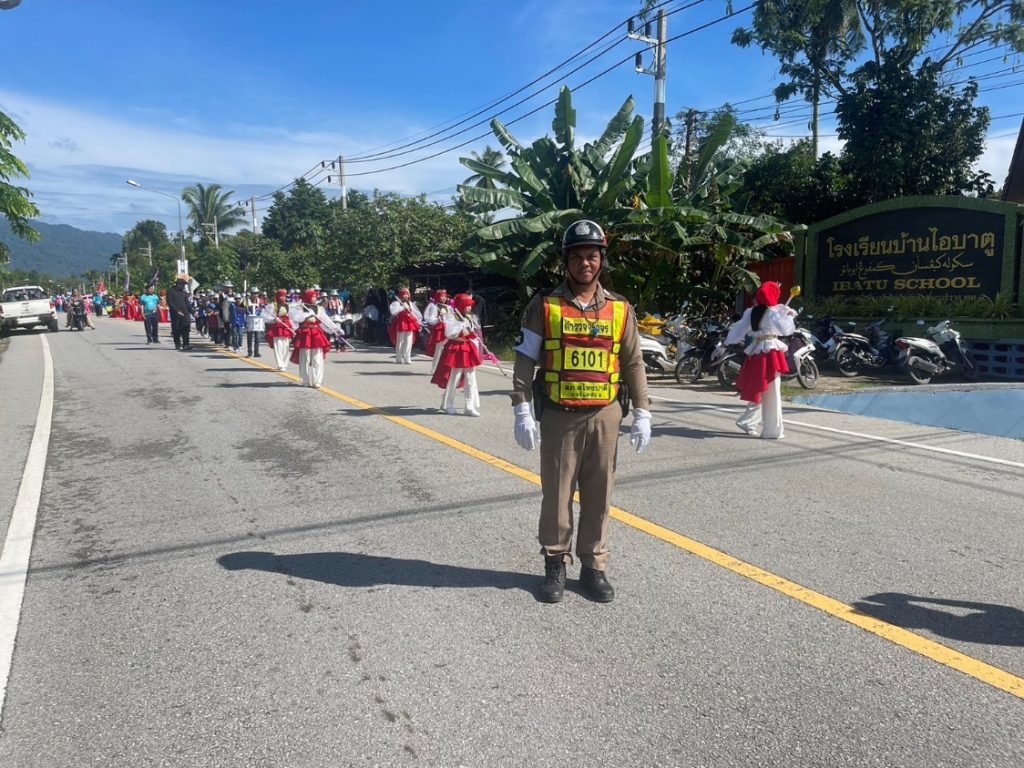 ผกก.สภ.สุไหงปาดี สั่งการให้ เจ้าหน้าที่ตำรวจจราจร สภ.สุไหงปาดี อำนวยความสะดวกการจราจรให้แก่เด็กนักเรียนในการทำกิจกรรมเดินขบวนพาเรทในพื้นที่