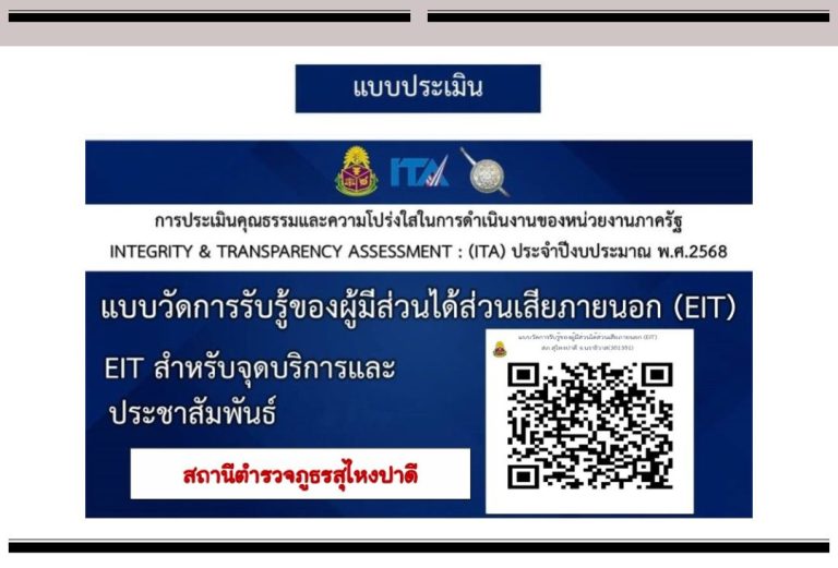 ประชาสัมพันธ์ข้อมูลการประเมินคุรธรรมและความโปร่งใสในการดำเนินงานของหน่วยงาน